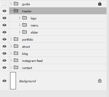 All layers inside the PSD files are arranged in four main groups as listed below: